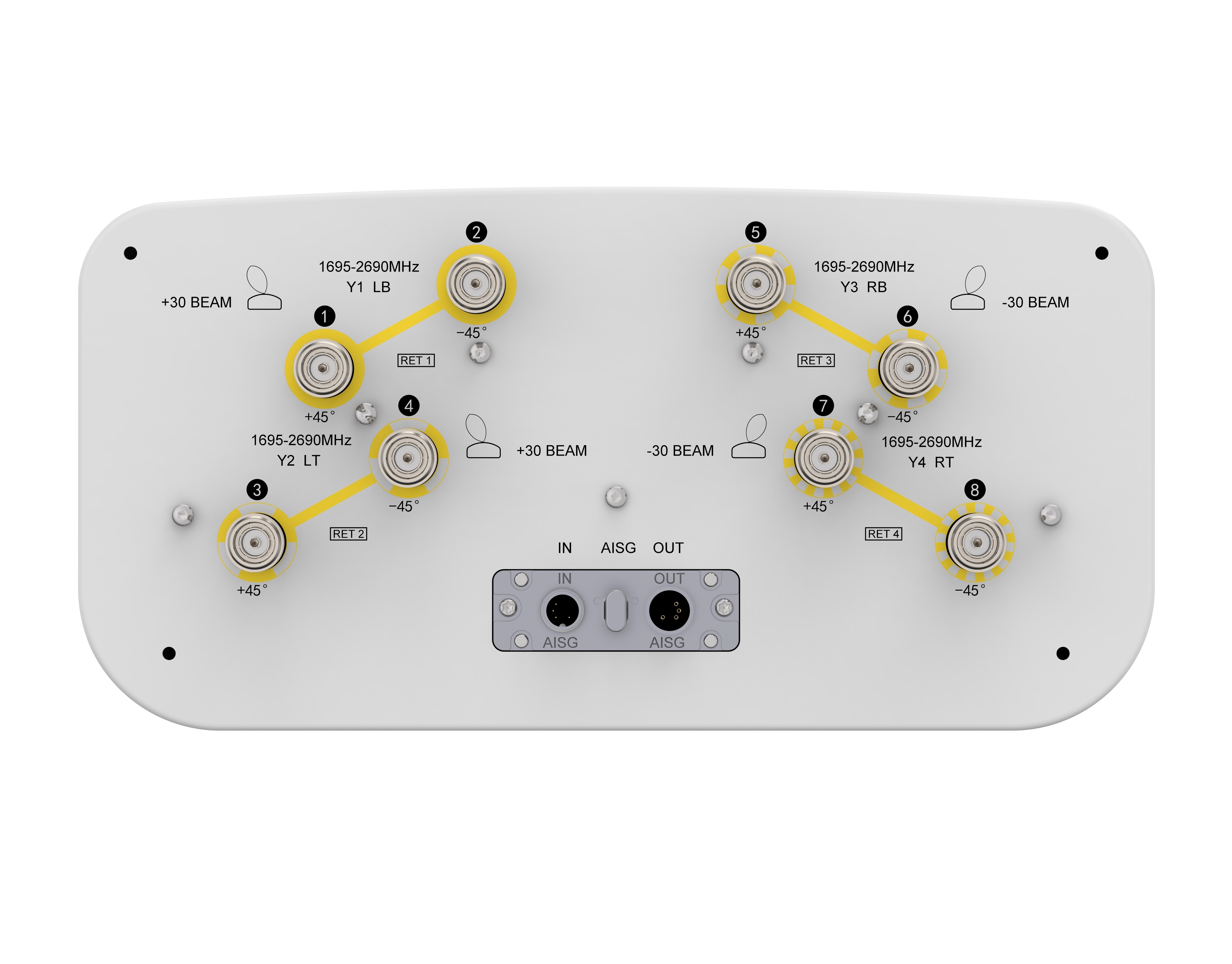 8-port multibeam antenna, 8x 1695–2690 MHz, 33° HPBW, 4xRET