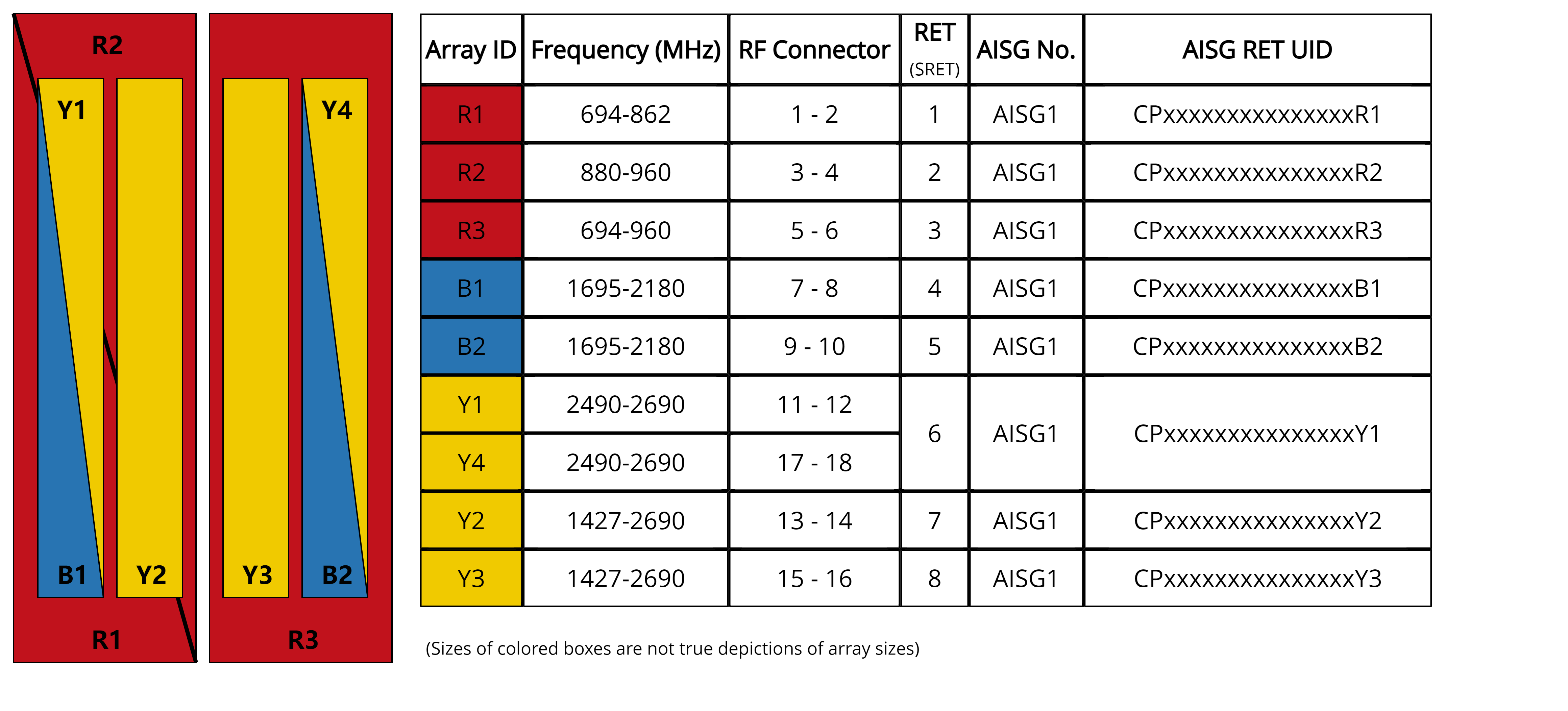 - All Internal RET actuators are connected in "Cascaded SRET" configuration