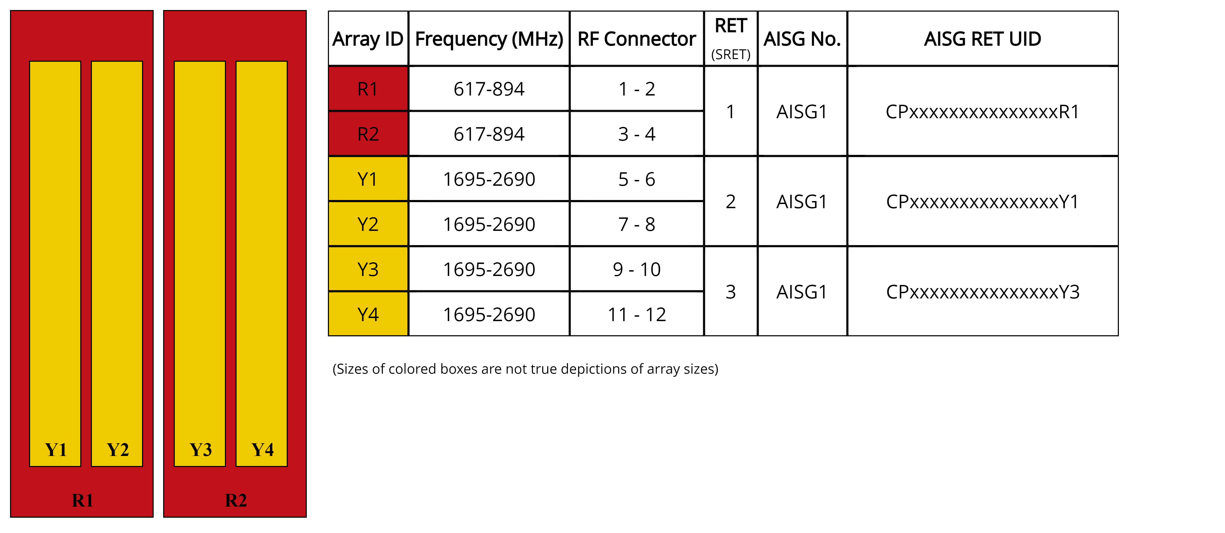 | Internal RET | Low band (1) | Mid band (2) |