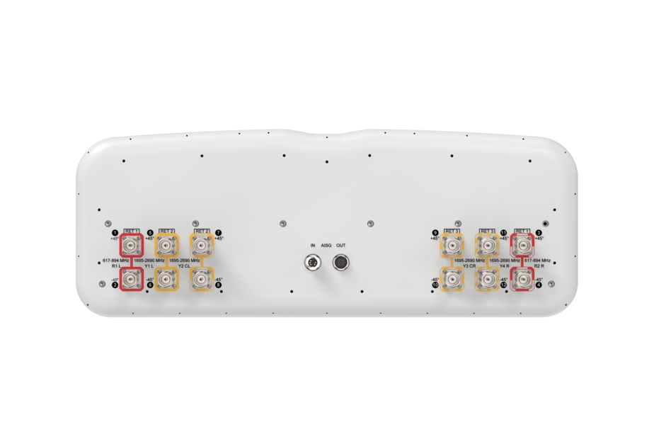 12-Port antenna, 4 x 617-894 MHz, 8 x 1695-2690 MHz, 65° HPBW, 3 x RET