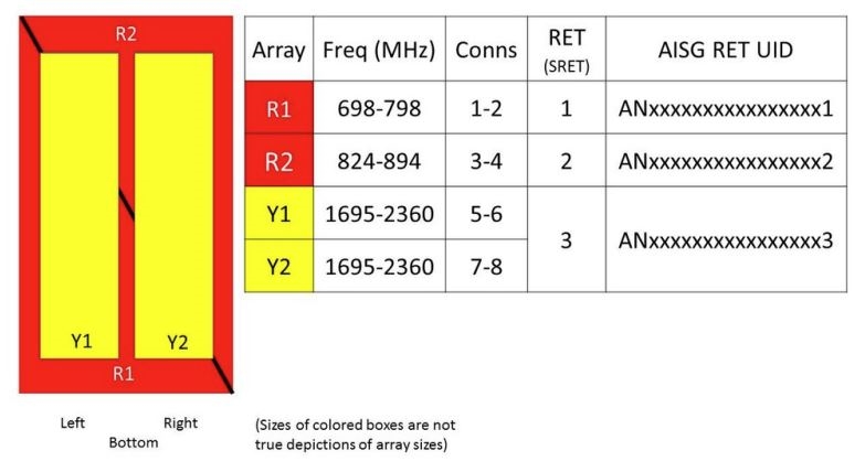 - One RET for 700MHz, one RET for 850MHz, and one RET for both high bands to ensure same tilt level for 4x Rx or 4x MIMO
