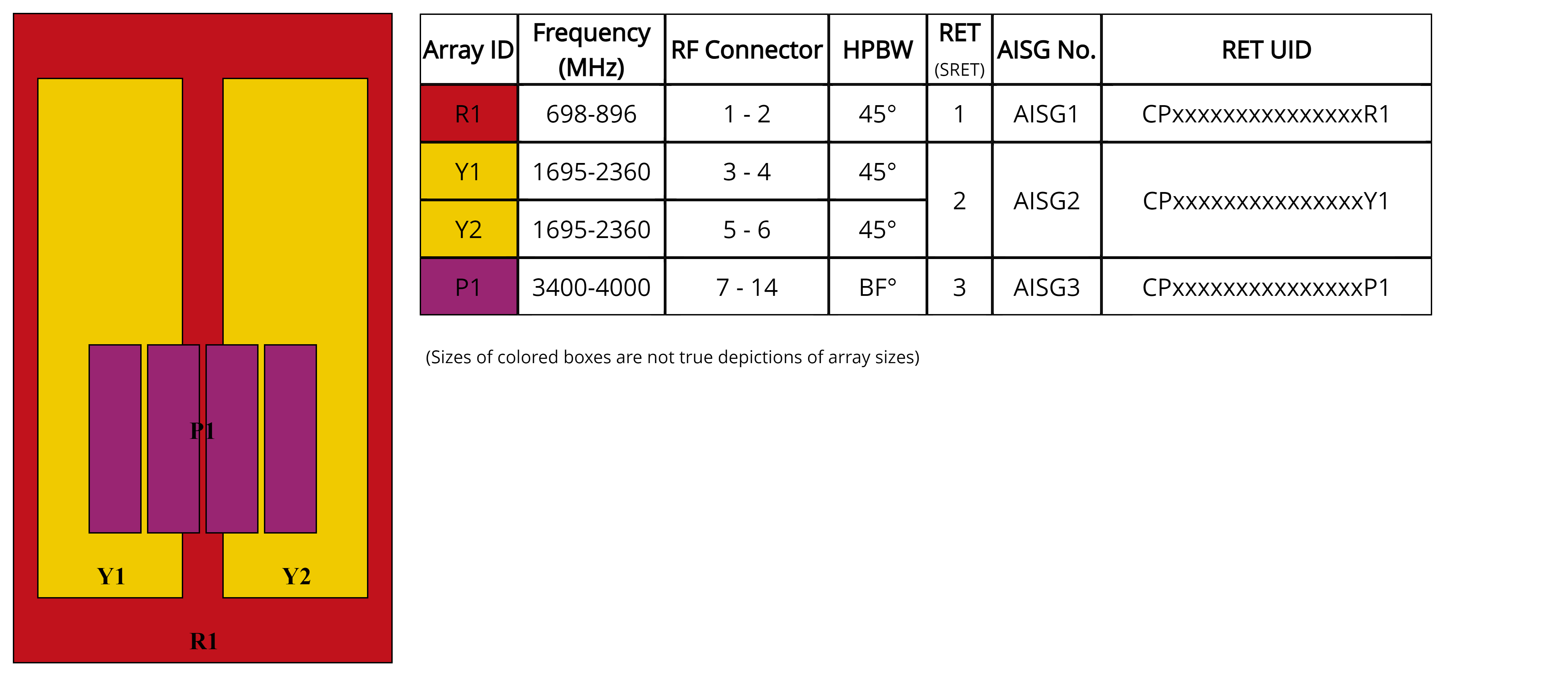 • One LB RET, one MB RET and one HB RET. Both mid bands are controlled by one RET to ensure same tilt level for 4x Rx or 4x MIMO