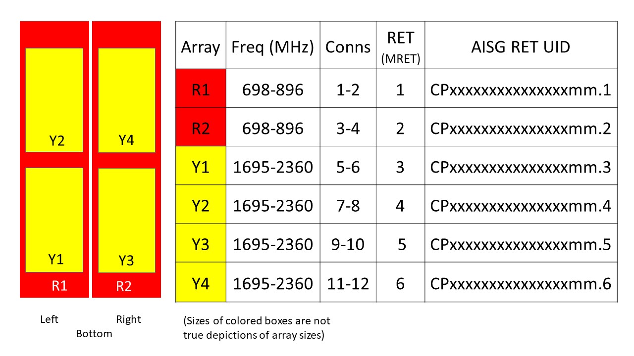 | Internal RET | High band (4) | Low band (2) |