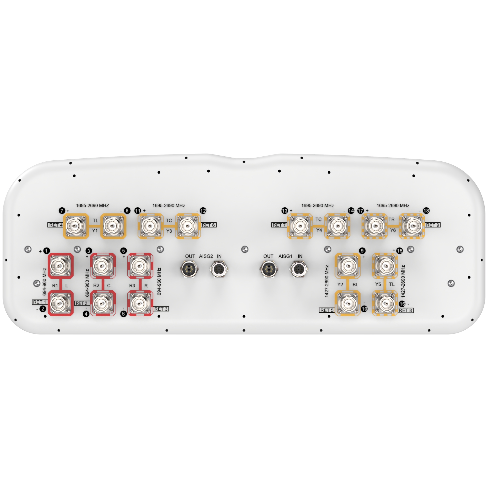| Internal RET | Low band (3) | Mid band (6) |