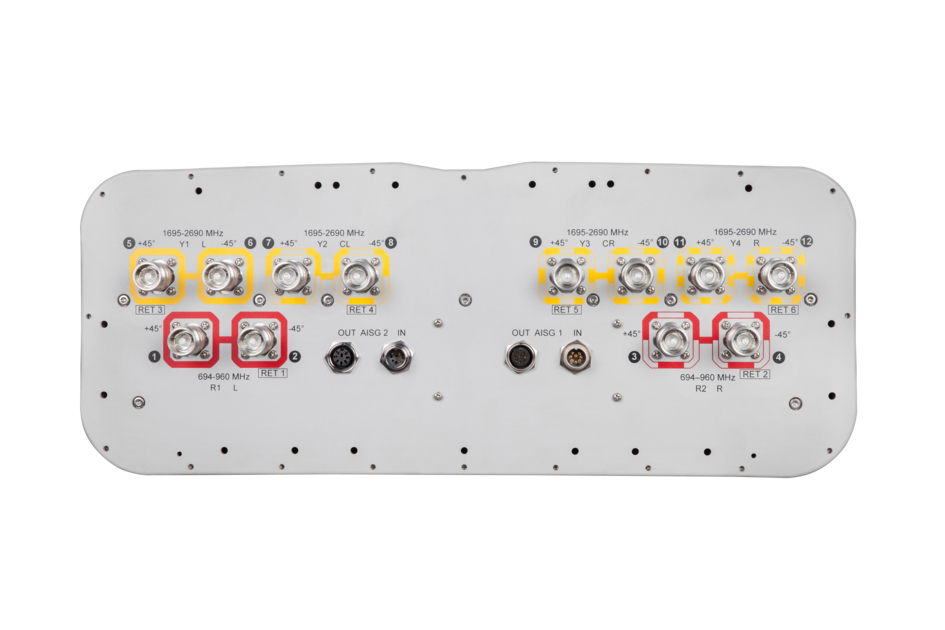12-port sector antenna, 4x 694–960 and 8x 1695-2690 MHz, 65° HPBW, 6x RET