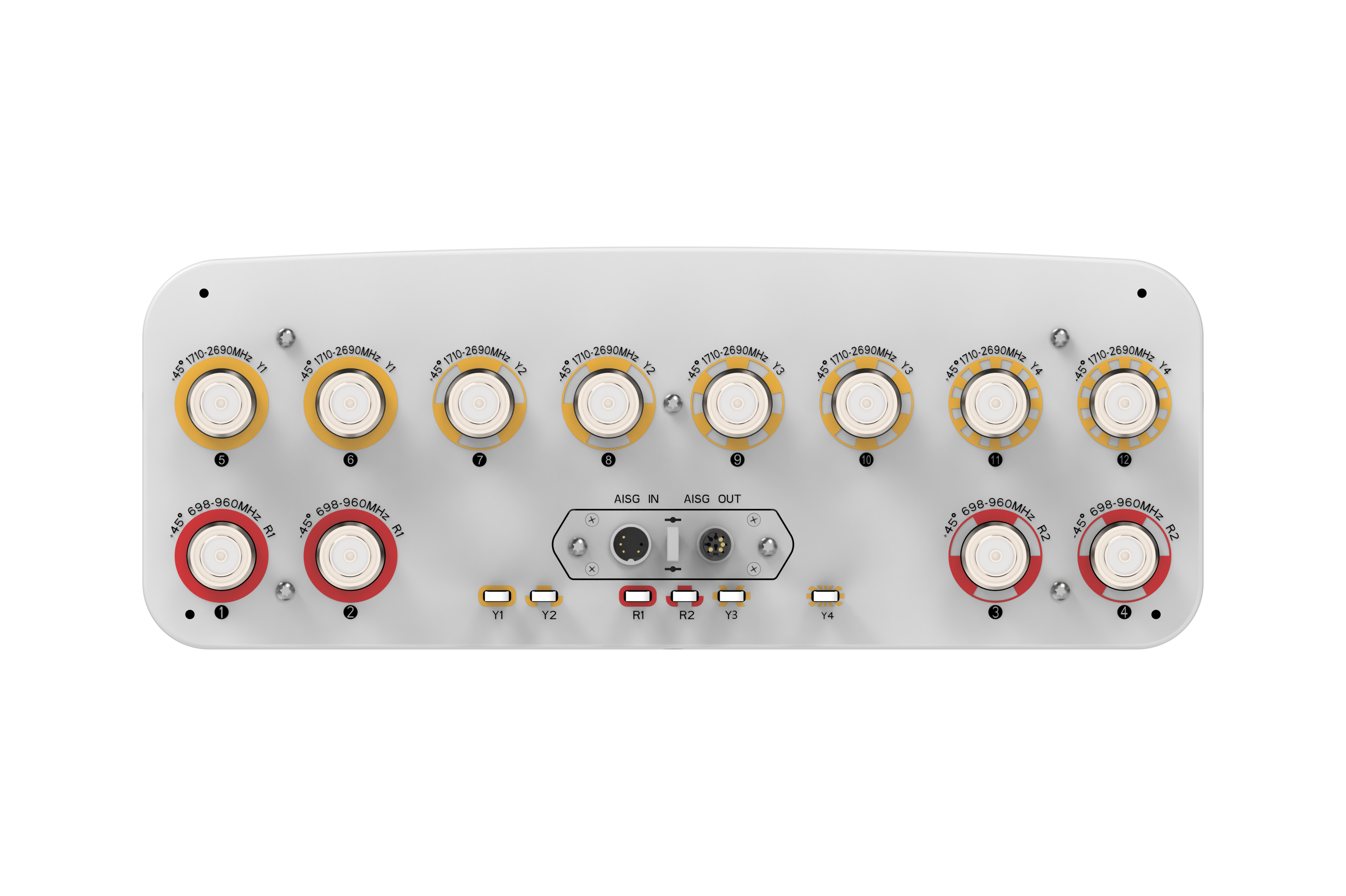 12-port sector antenna, 4x 698–960 and 8x 1710–2690 MHz, 65° HPBW, 6x RET