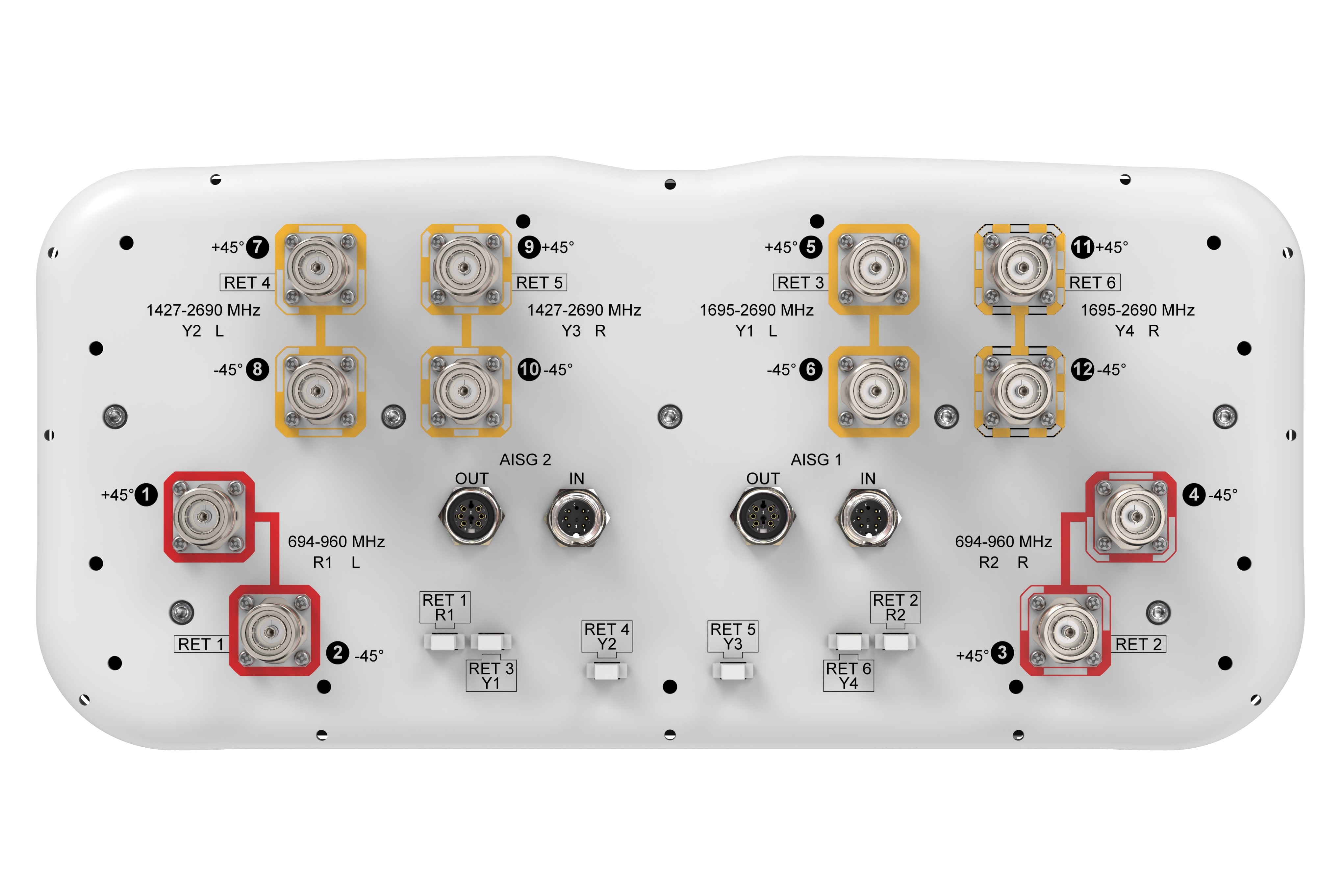 12-port sector antenna, 4x 694–960, 4x 1427–2690 and 4x 1695-2690 MHz, 65° HPBW, 6x RET