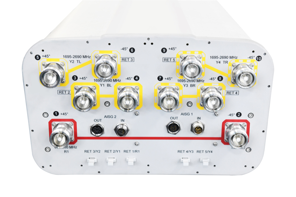 - Supports re-configurable antenna sharing capability enabling control of the internal RET system using up to two separate RET compatible OEM radios (Supports_r)