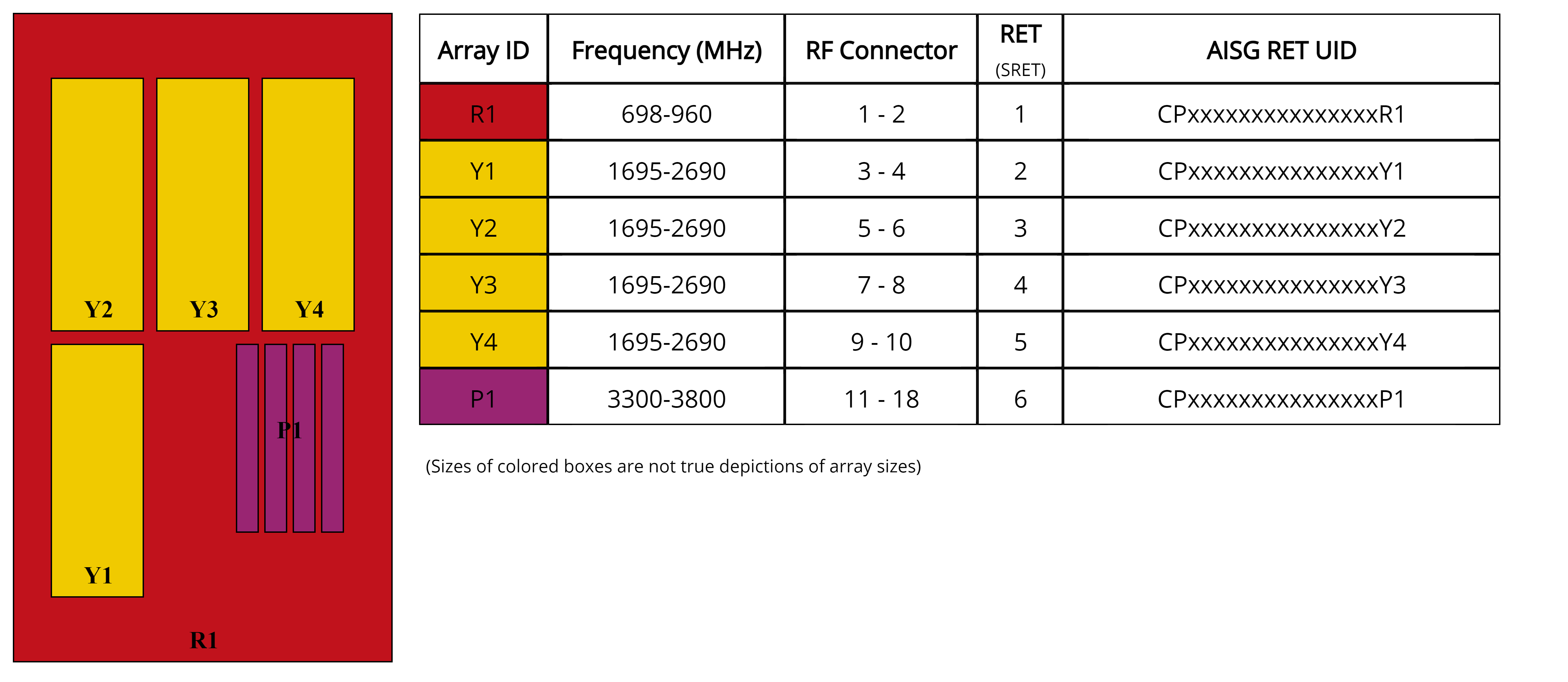 - Provide a future-ready antenna solution with flexibility to reassign antenna, support 2T2R at 698-960MHz, 4T4R at 1695-2690MHz, and 8T8R at 3300-3800MHz