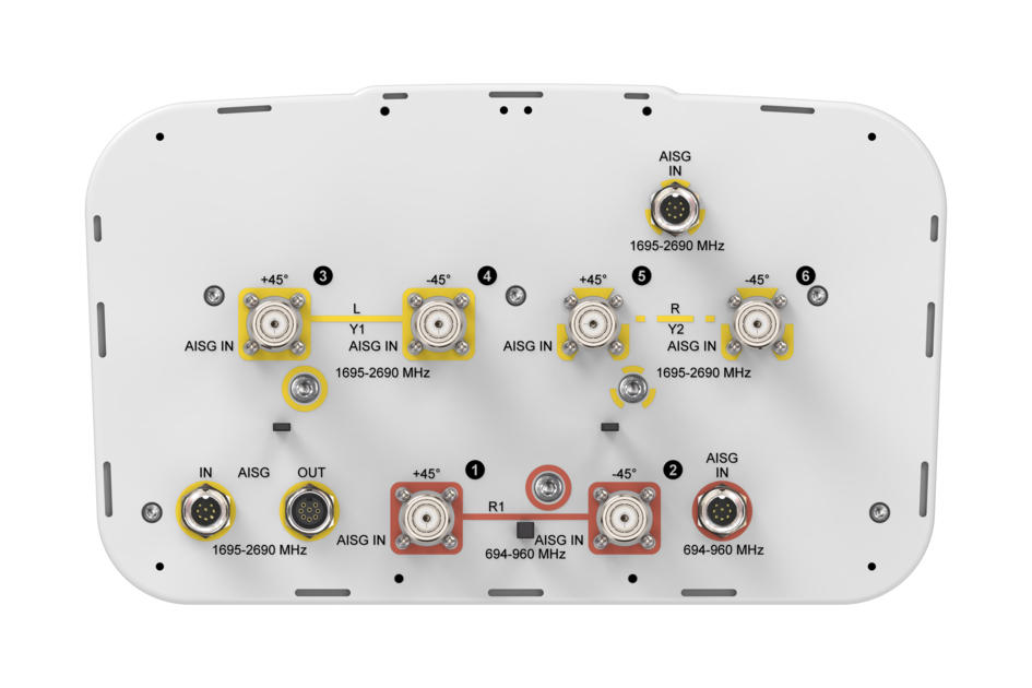 - Internal RET actuators are connected in SRET configuration, with dedicated AISG ports for each band