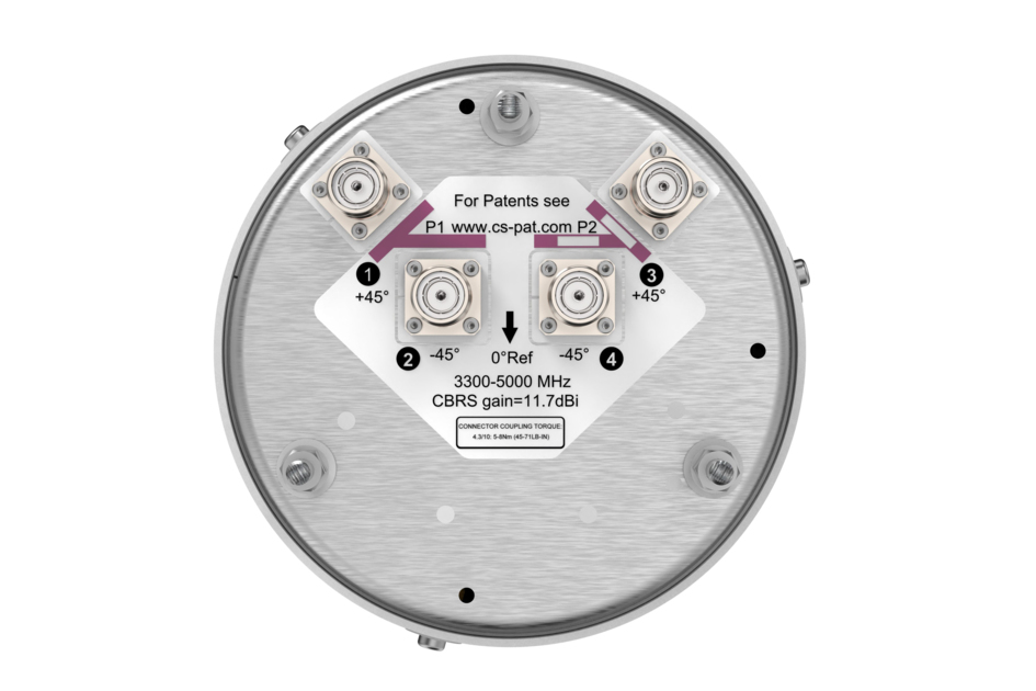 4-port small cell antenna, 4x 3300-5000 MHz. 360° Horizontal Beamwidth, fixed tilt.