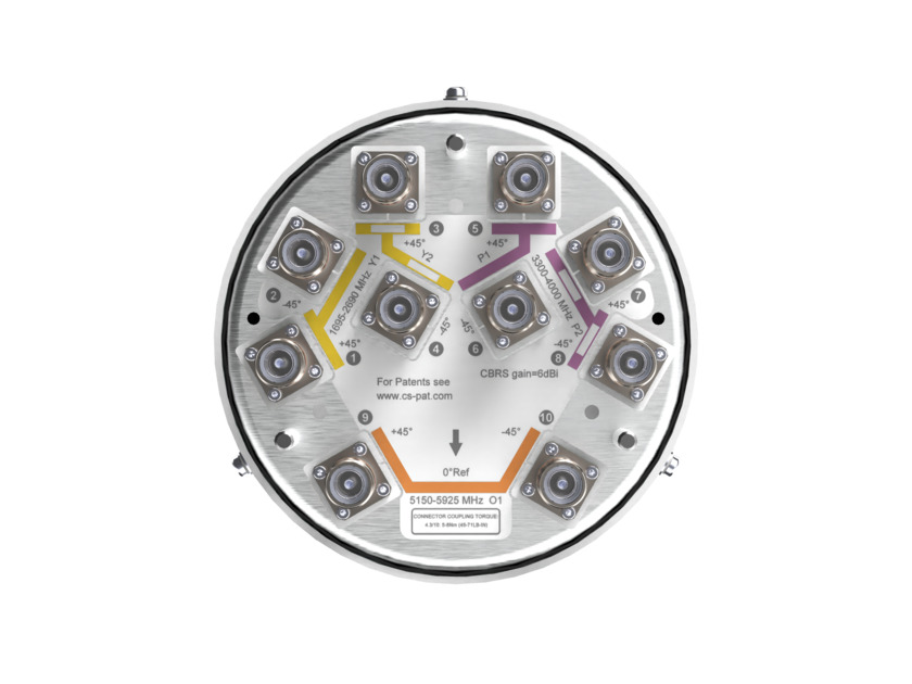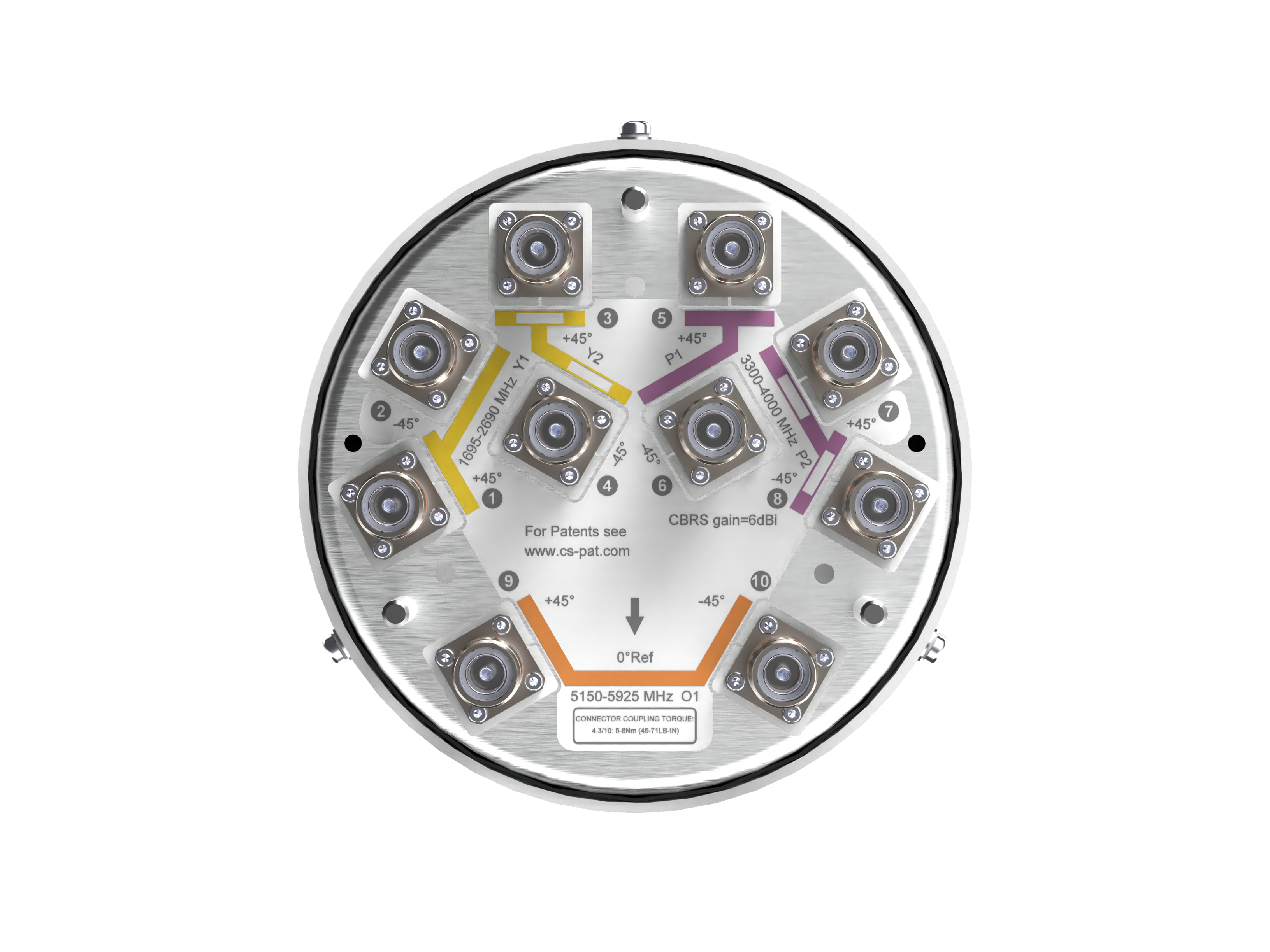 10-port small cell antenna, 4x 1695-2690, 4x 3300-4000, 2x 5150-5925 MHz, 360° Horizontal Beamwidth, fixed tilt.