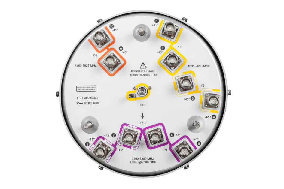 10-port small cell antenna, 4x 1695–2690, 4x 3400-3800 and 2x 5150-5925 MHz. 360° Horizontal Beamwidth, MANUAL ELECTRICAL TILT