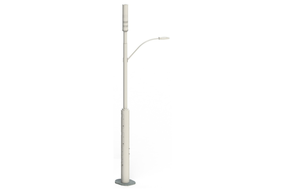 Multi Carrier Round 20 inch diameter, Integrated Pole Base Concealment Pole for 4G/5G deployments, to house and conceal multiple radios and any other wireless infrastructure equipment in the base of the pole.