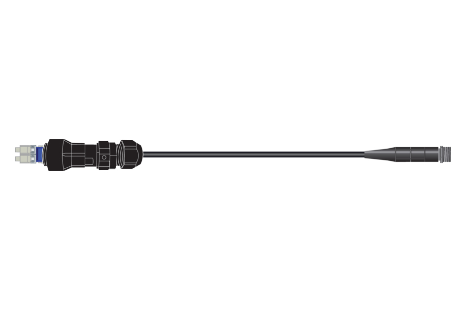 HELIAX® Direct tail, 2 single mode fiber, armored 6 mm furcation cable, Ruggedized DLC with fiber weatherproof shroud at RRU, outdoor fiber connectors compatible with ODC interface for direct breakout connection