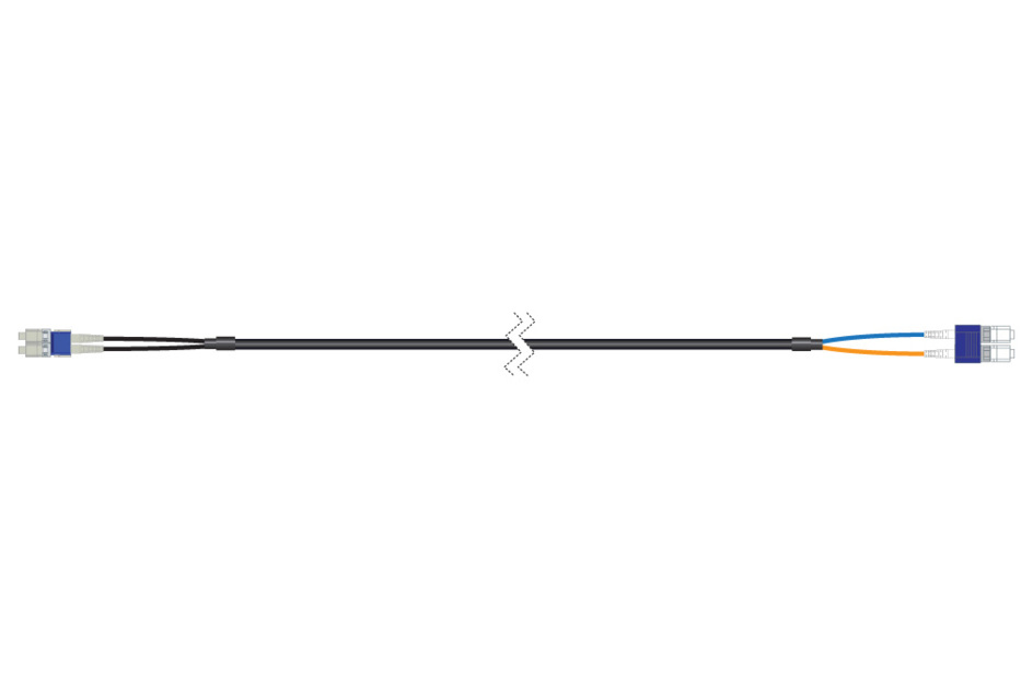 HELIAX® Discrete, 2 single mode fiber, 5 mm LSZH cable. End 1: DLC. End 2: SC