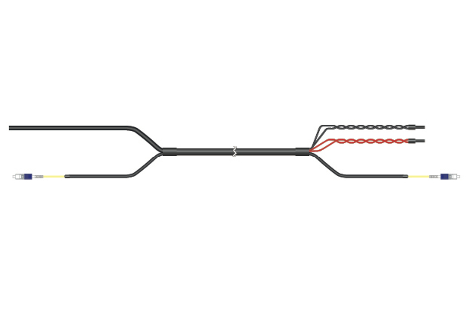 HELIAX® Hybrid Cable Assembly, BiDi, 6-OVP box to RRU, UL Type TC-ER, 4 power conductors 10 AWG at OVP, 1 power cord 8 AWG at RRU, 1 Simplex fiber connectors, PVC jacket, aluminum armor, OVP gland insert kit included