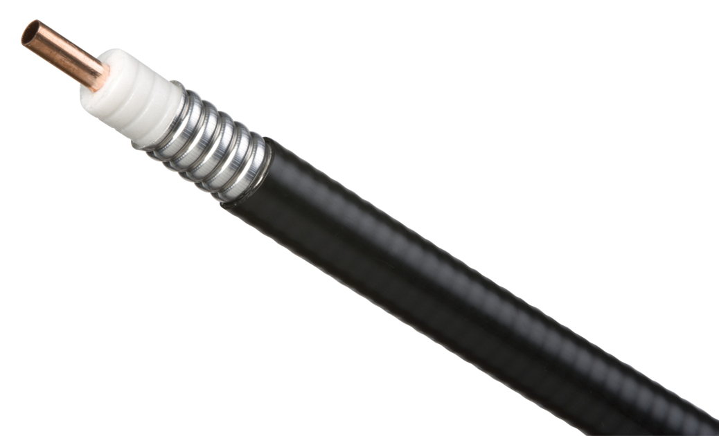 AL5-50, HELIAX® Low Loss Flexible Aluminum Coaxial Cable, corrugated aluminum, 7/8 in, black PE jacket.