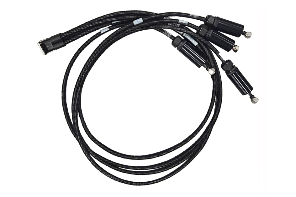 HELIAX® M-LOC Multiport cluster 4 ports SureFlex® cable assembly with interface type M-LOC latching male to 7-16DIN male with HELIAX® SureGuard weatherproofing,size 3/8", length 5 meters, covered by conduit shield