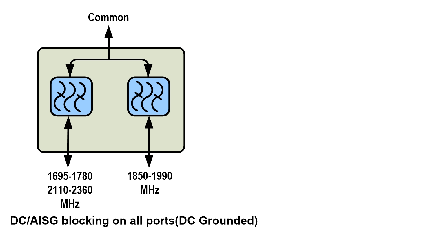 • dc/AISG blocking on all ports (DC grounded)