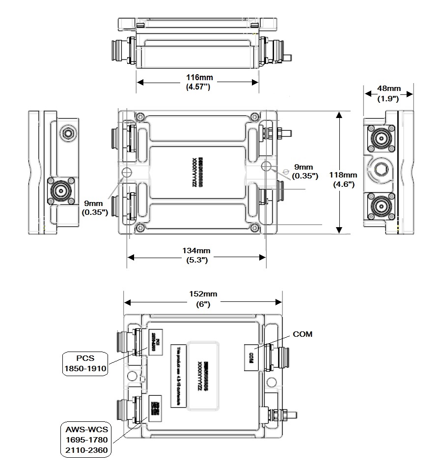 Diplexer PCS/AWS+WCS, DC block, 4.3-10