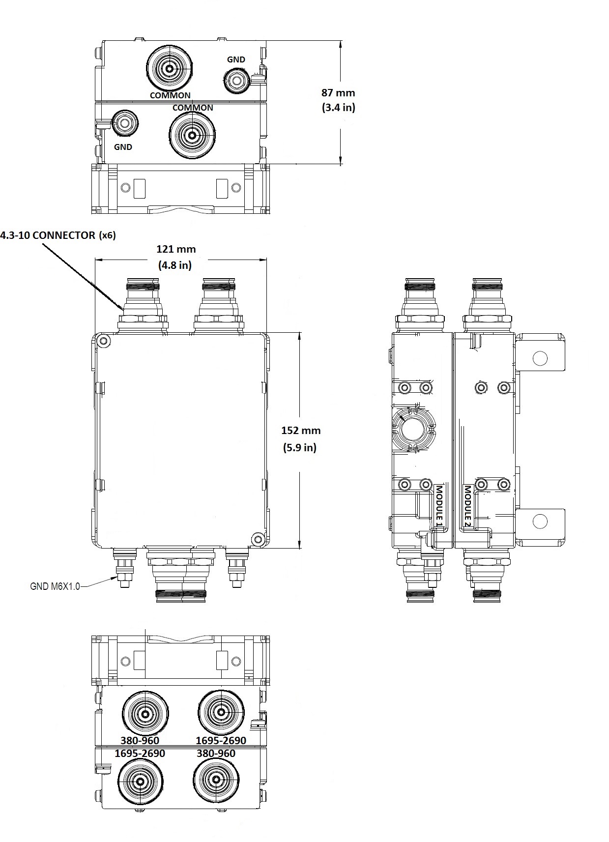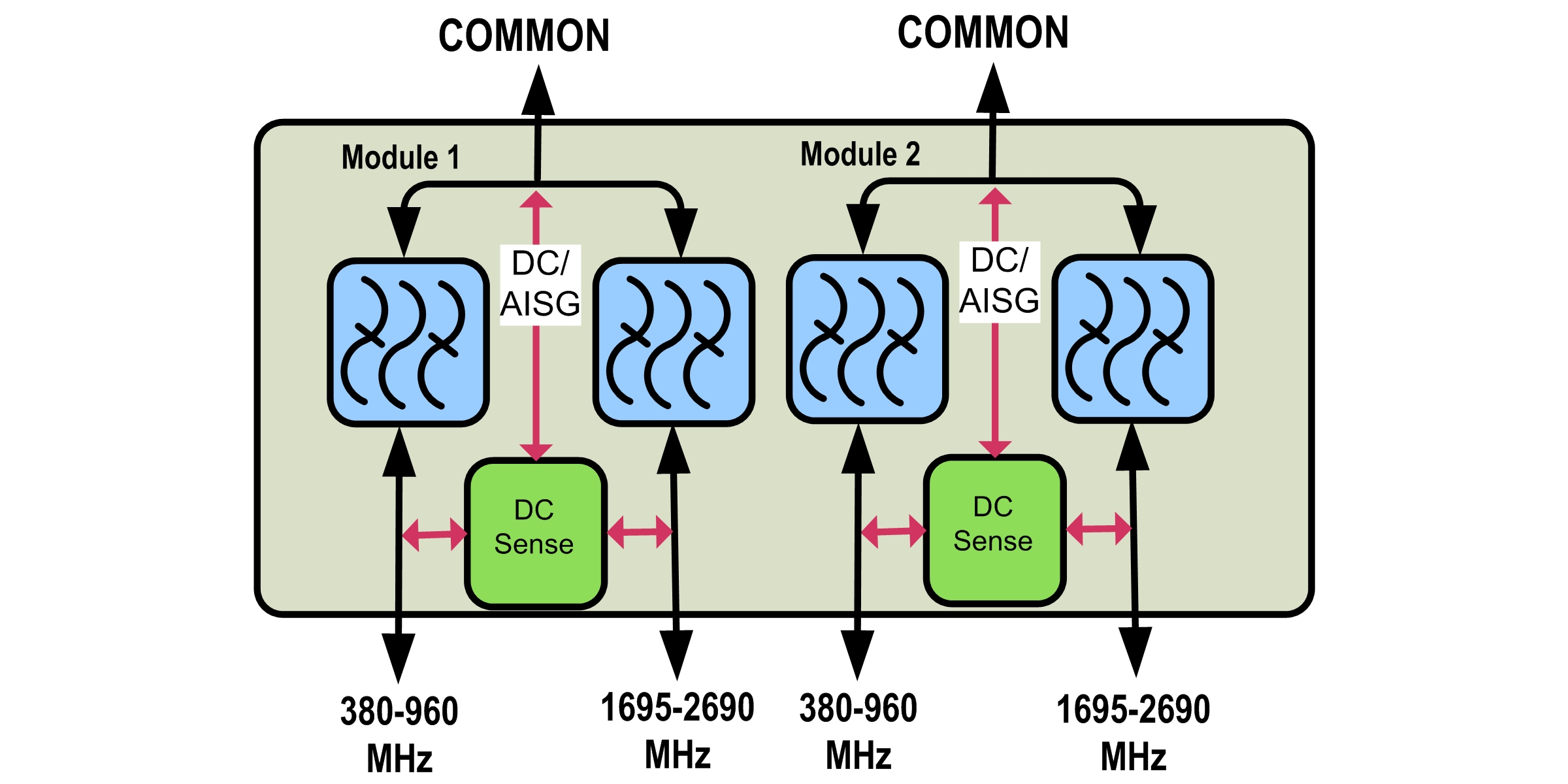 Twin Diplexer, 380–960 MHz/1695–2690 MHz,dc Sense,4.3-10