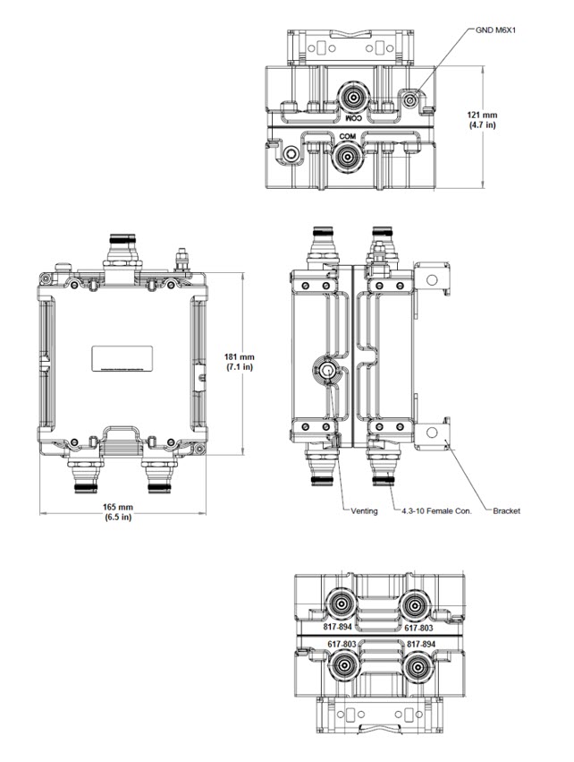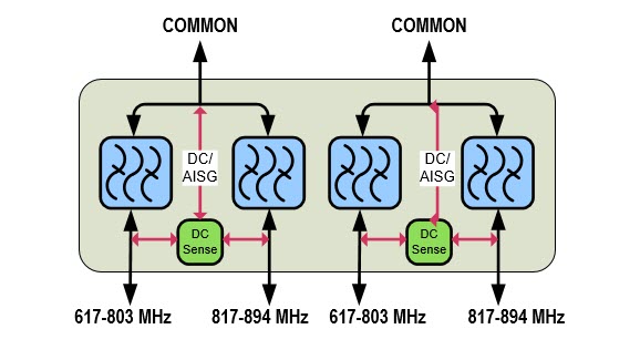 Twin Diplexer 617-803/817-894 MHz, DC Sense, 4.3-10