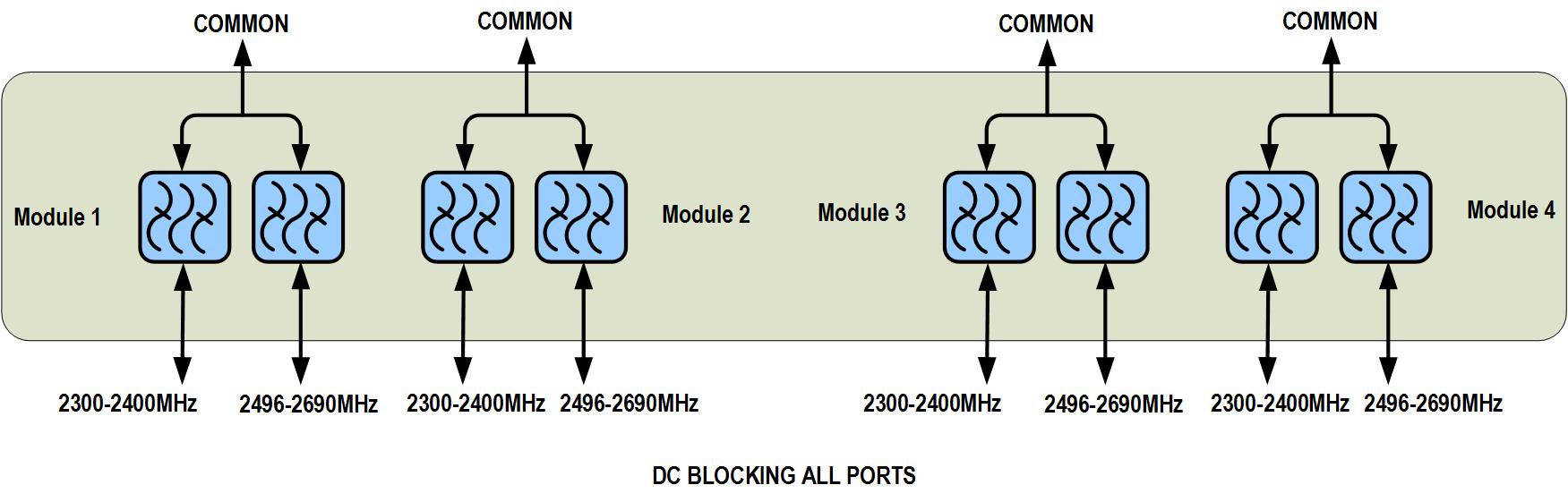 dc/AISG Pass-through, demultiplexer dc/AISG blocking on all ports