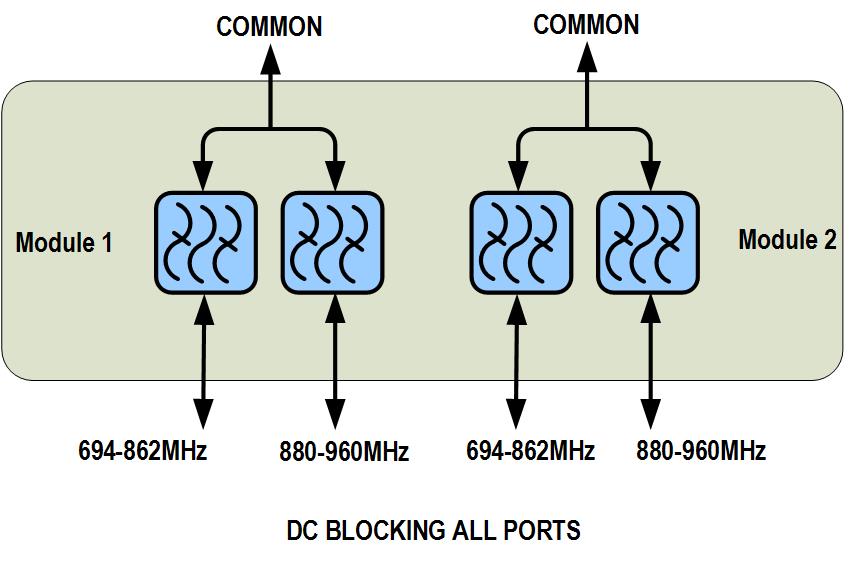 Twin Diplexer, 2S-DPX D2-800/900 DC Block All ports, 4.3-10 connectors