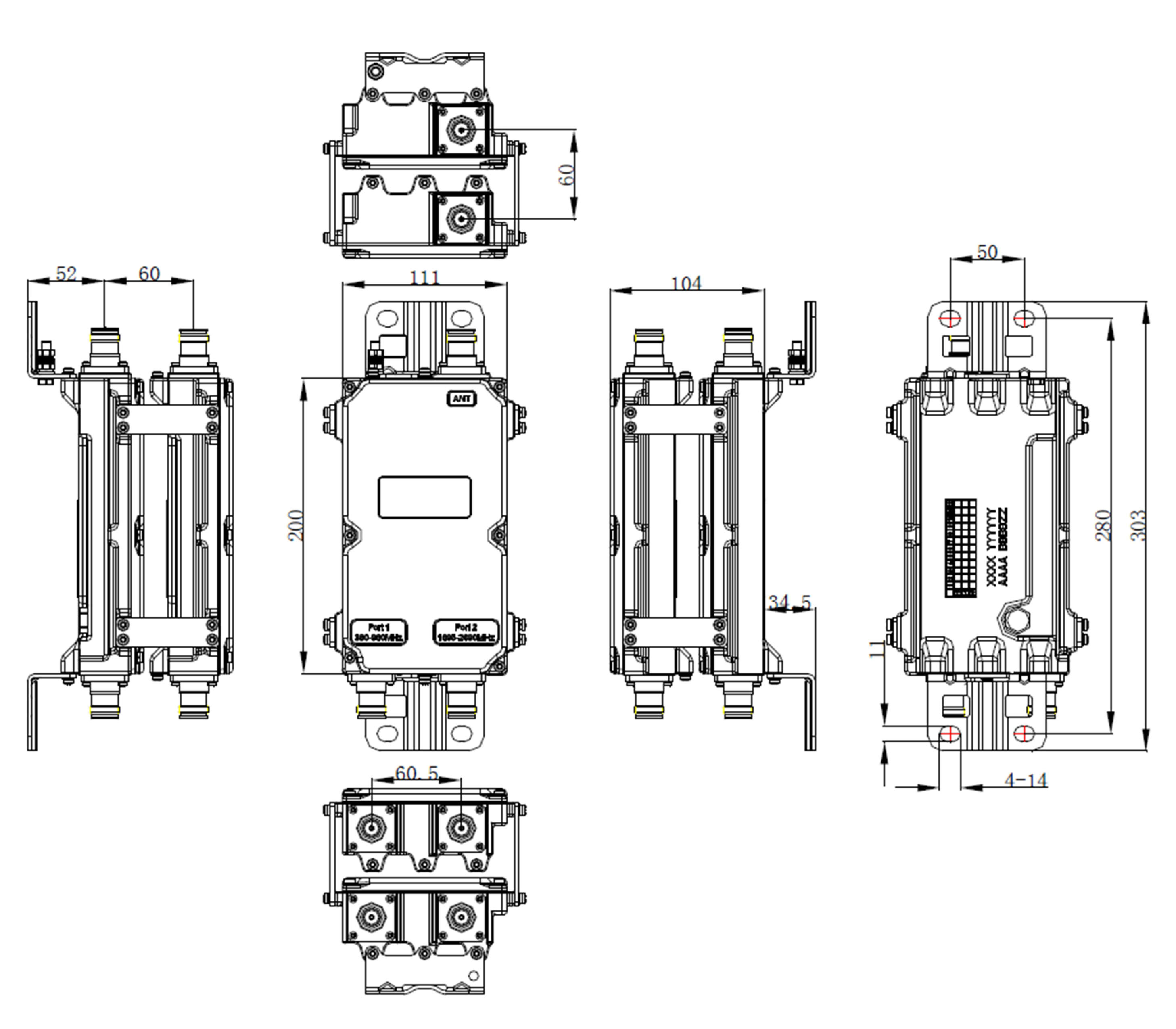 Port Designation PORT 1 380-960 PORT 2 1695-2690