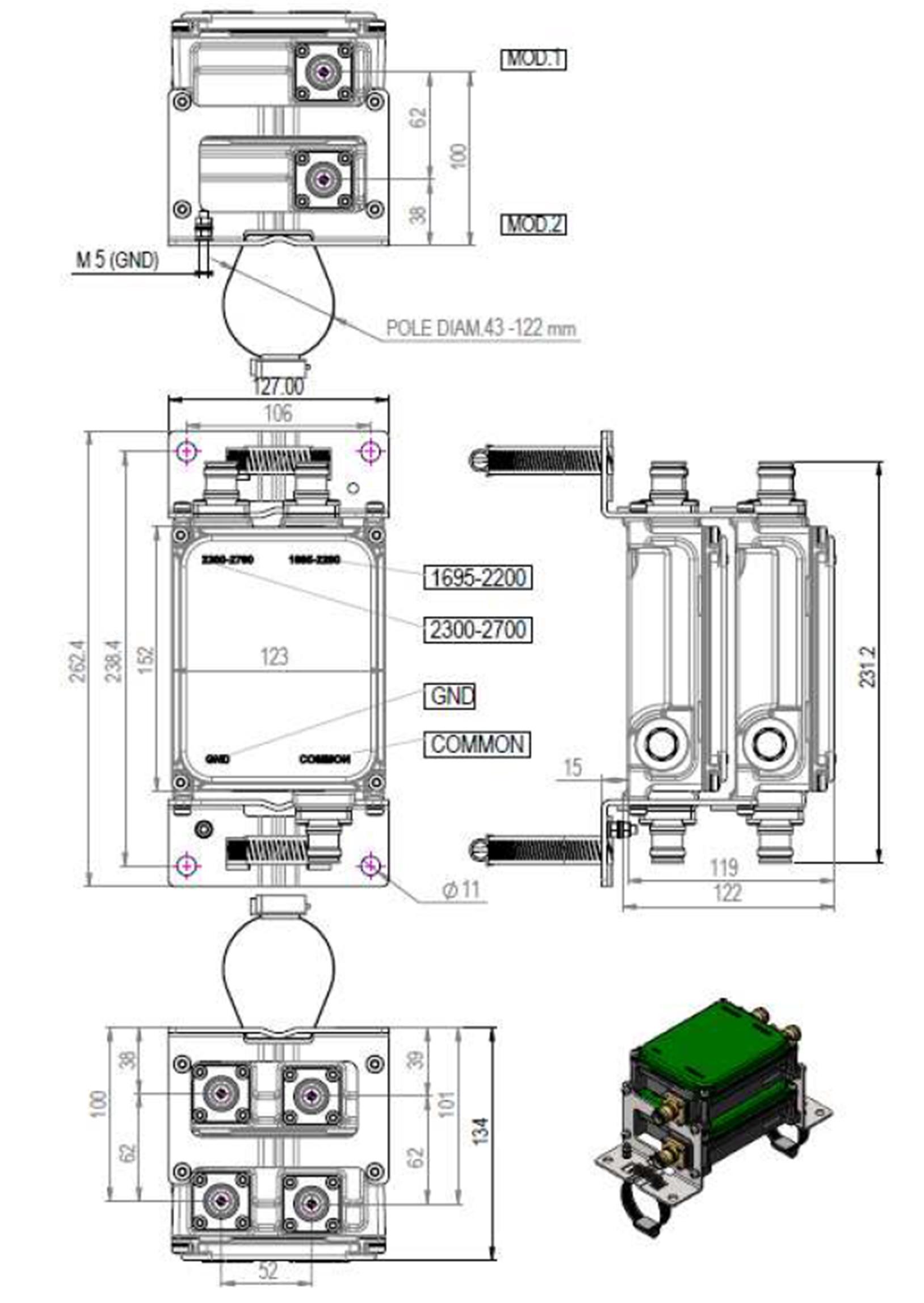 • Designed for network modernization application, introduction of LTE2300 and LTE2600 on existing site