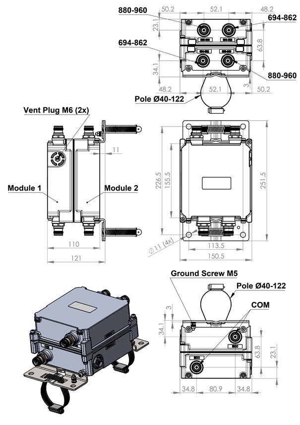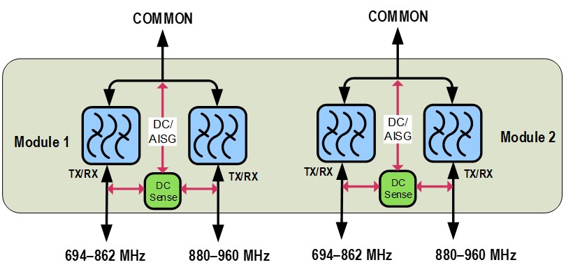 Twin Diplexer,694–862 MHz/880–960 MHz, DC SMART bypass all, with 4.3-10 connectors