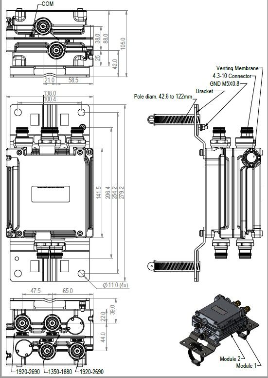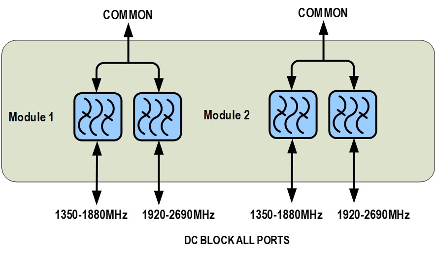 Twin Diplexer, 1350–1880 MHz/1920–2690 MHz, DC Block, with 4.3-10 connectors