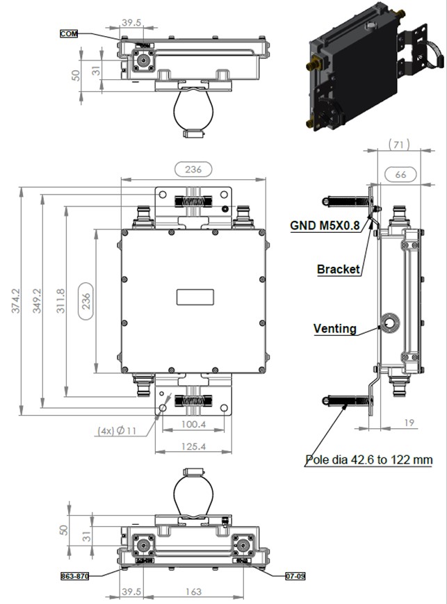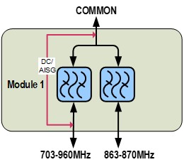 Single Diplexer, 703-960/863-870 MHz, dc by pass on 703-960 band port