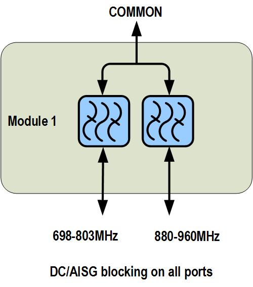 dc/AISG Pass-through, combiner dc/AISG blocking on all ports