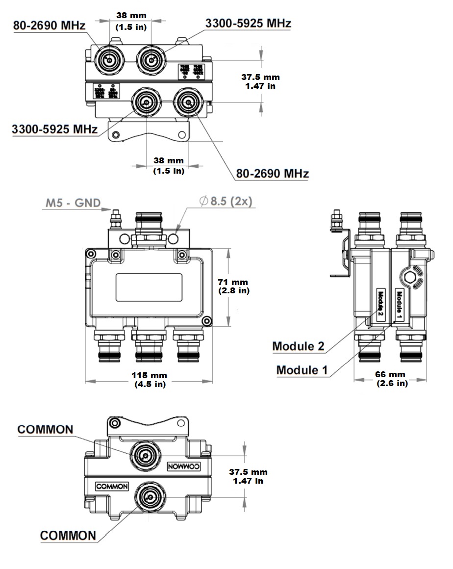 Ultra Compact Twin Diplexer 80-2690MHz/3300-5925MHz, 4.3-10