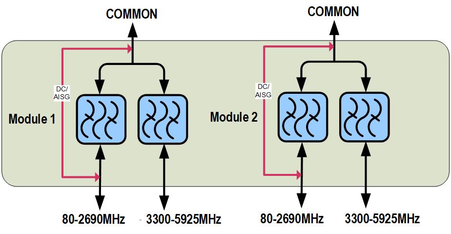 Ultra Compact Twin Diplexer 80-2690MHz/3300-5925MHz, 4.3-10