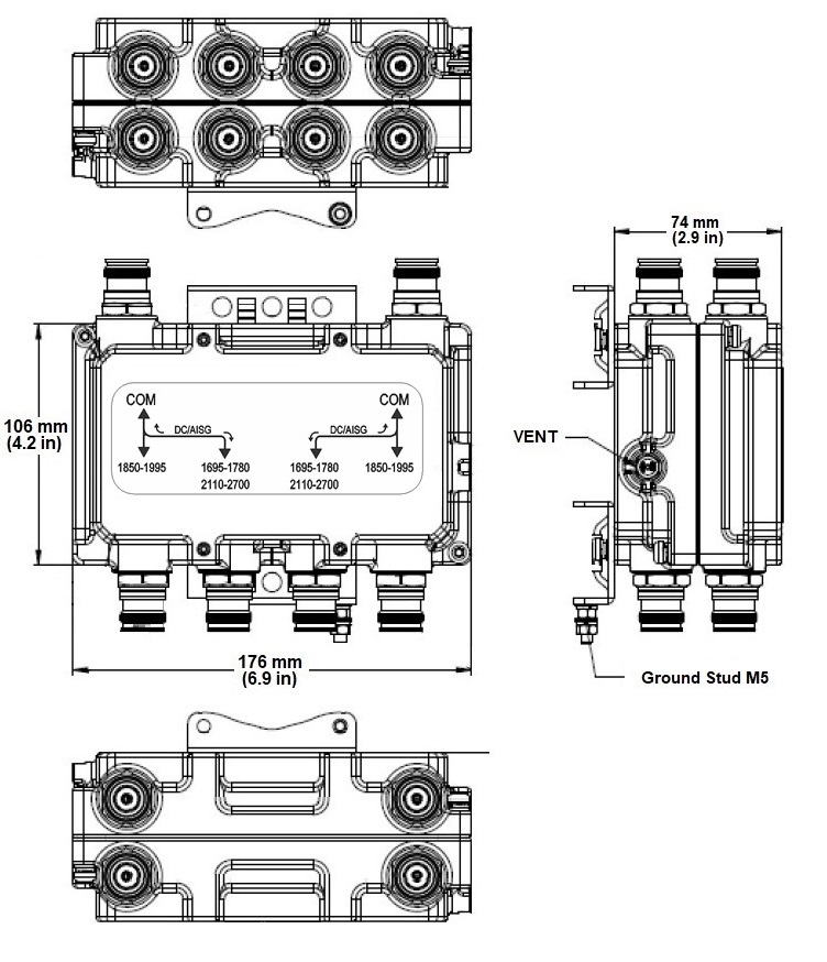• DC/AISG pass on 1695-1780/2110-2700 MHz