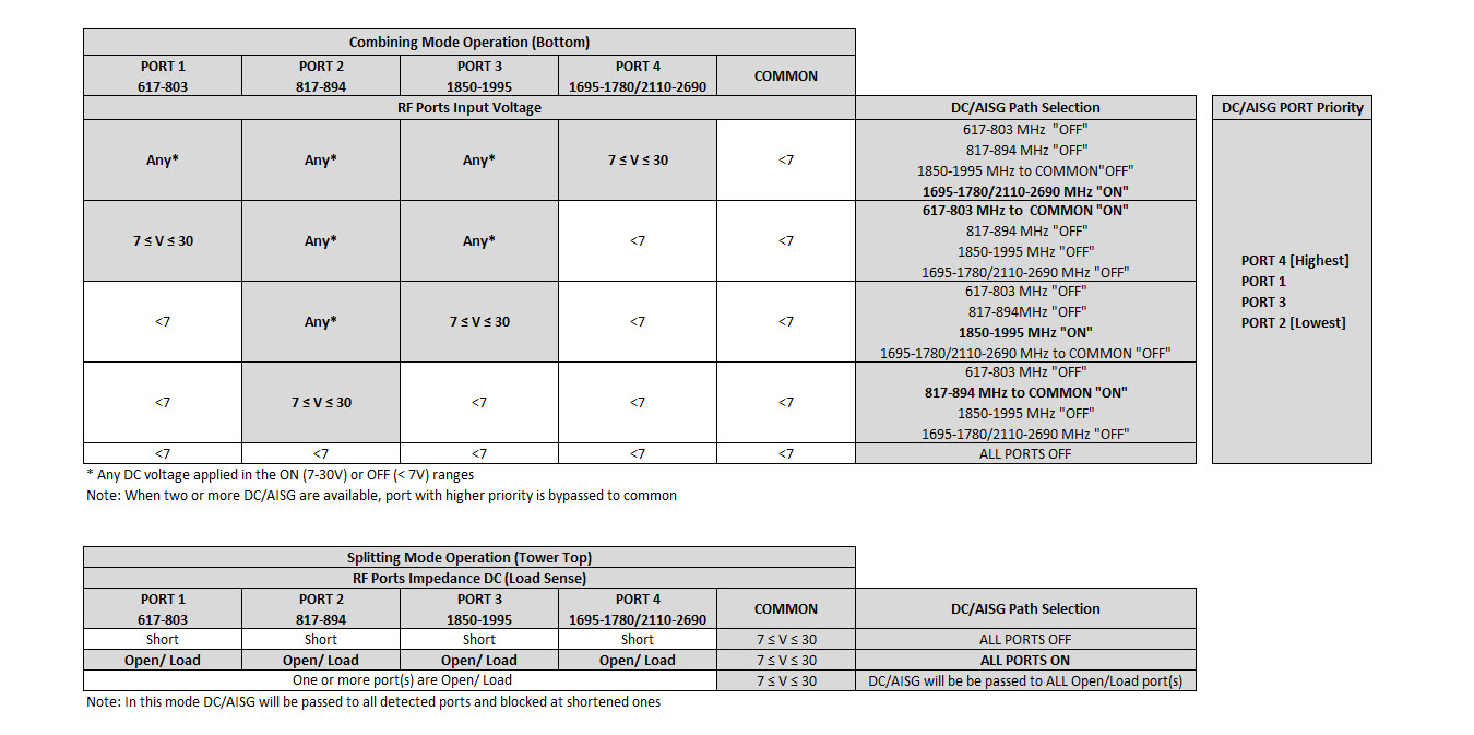 | Port Designation | 617-803 | 817-894 | PCS | AWS+WCS+BRS | AWS+WCS+BRS |