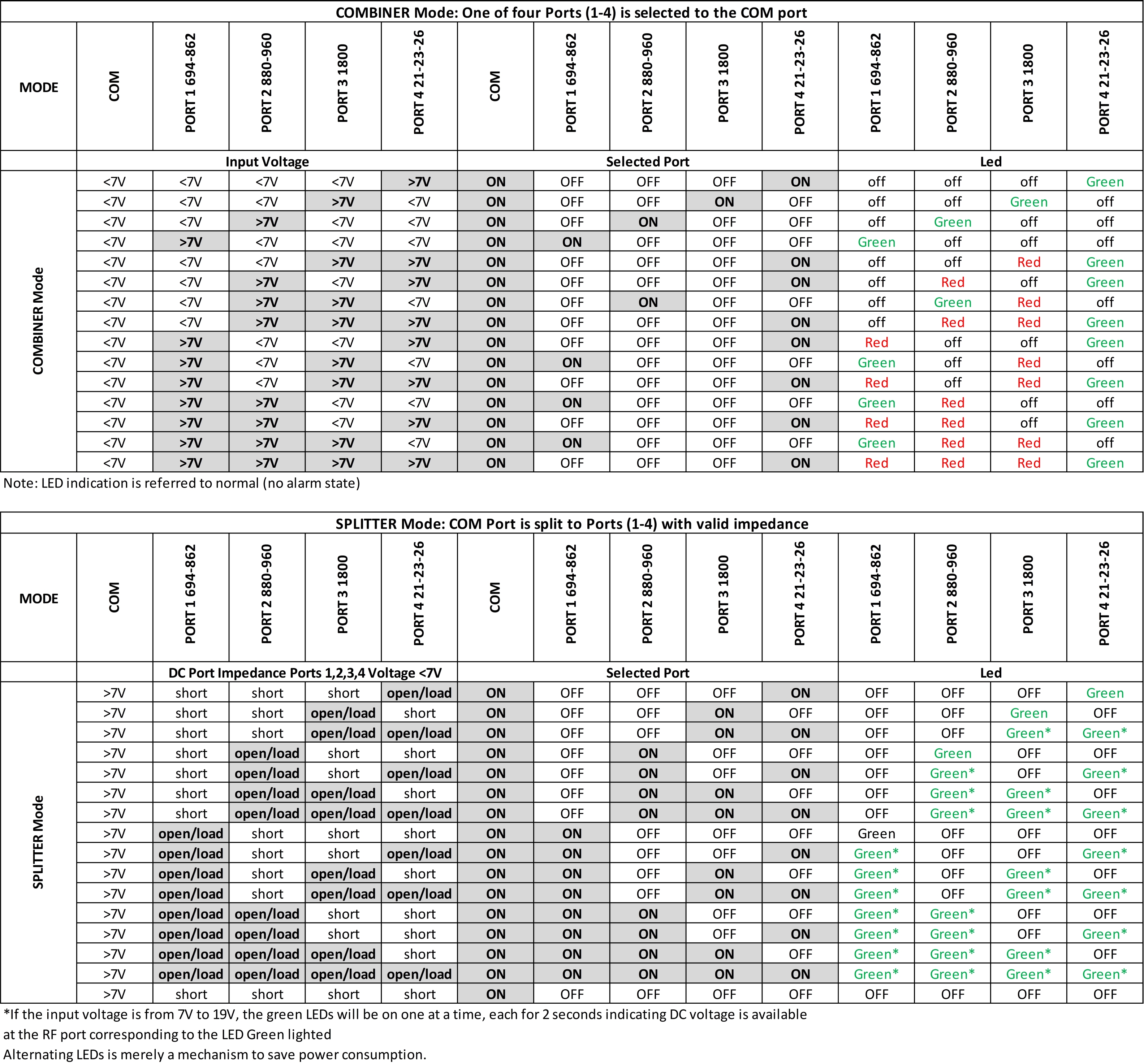 License Band APT 700, Band Pass; EDD 800, Band Pass CEL 900, Band Pass DCS 1800, Band Pass IMT 2100, Band Pass; IMT 2600, Band Pass