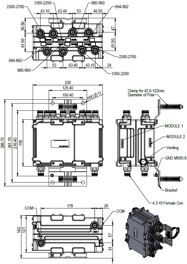 - New 4.3-10 connectors for improved PIM performance and size reduction