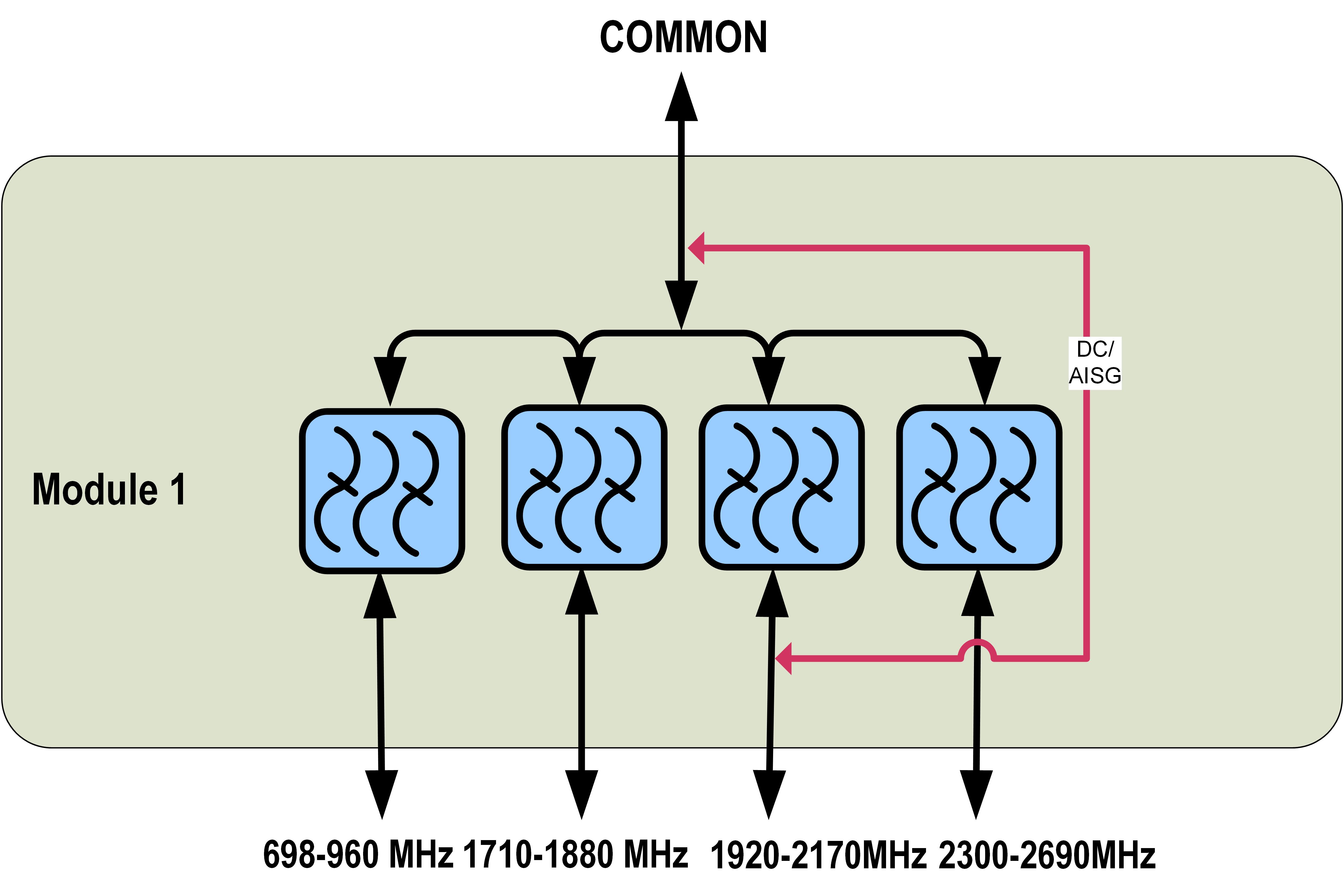 | Port Designation | PORT 1 698-960 | PORT 2 1710-1880 | PORT 3 1920-2170 | PORT 4 2300-2690 |