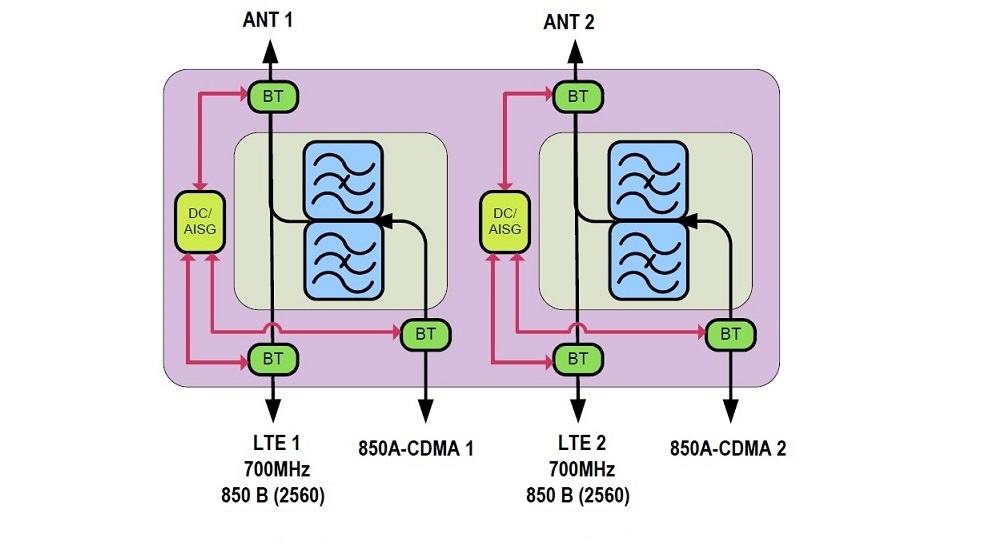 Twin In-Band Diplexer, A CDMA/ B 850/700 LTE, DC sense
