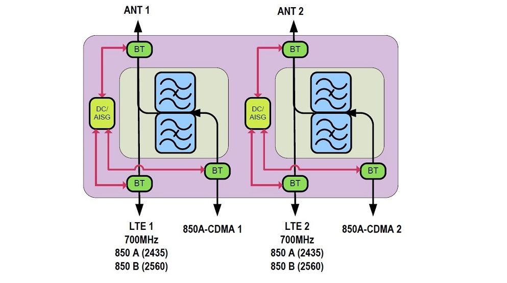 Twin In-band Diplexer A&B blocks 850 MHz, DC Sense