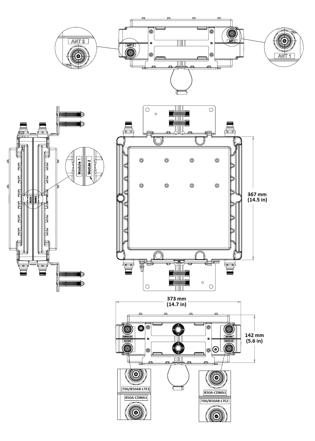 - LTE port supports the use of dual band 700/850 radios or diplexed radio ports