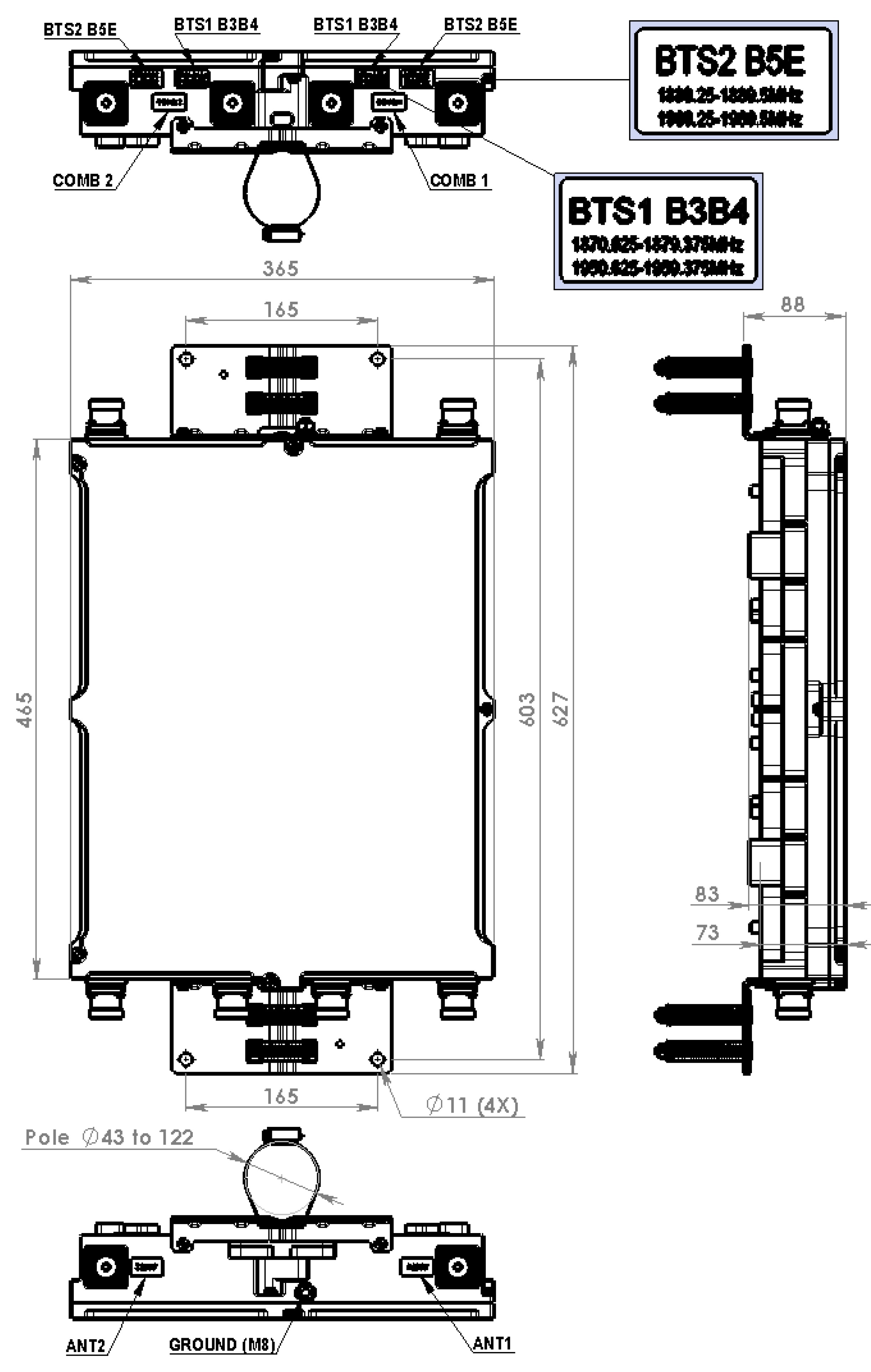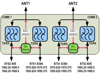 Twin Inband Diplexer PCS B3B4-B5E, DC sense