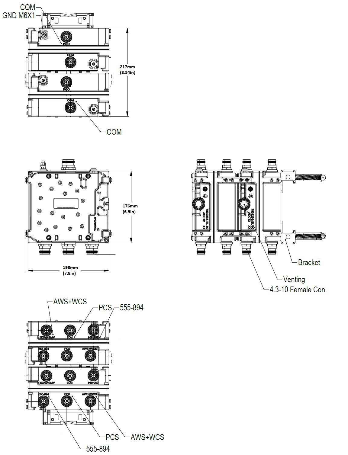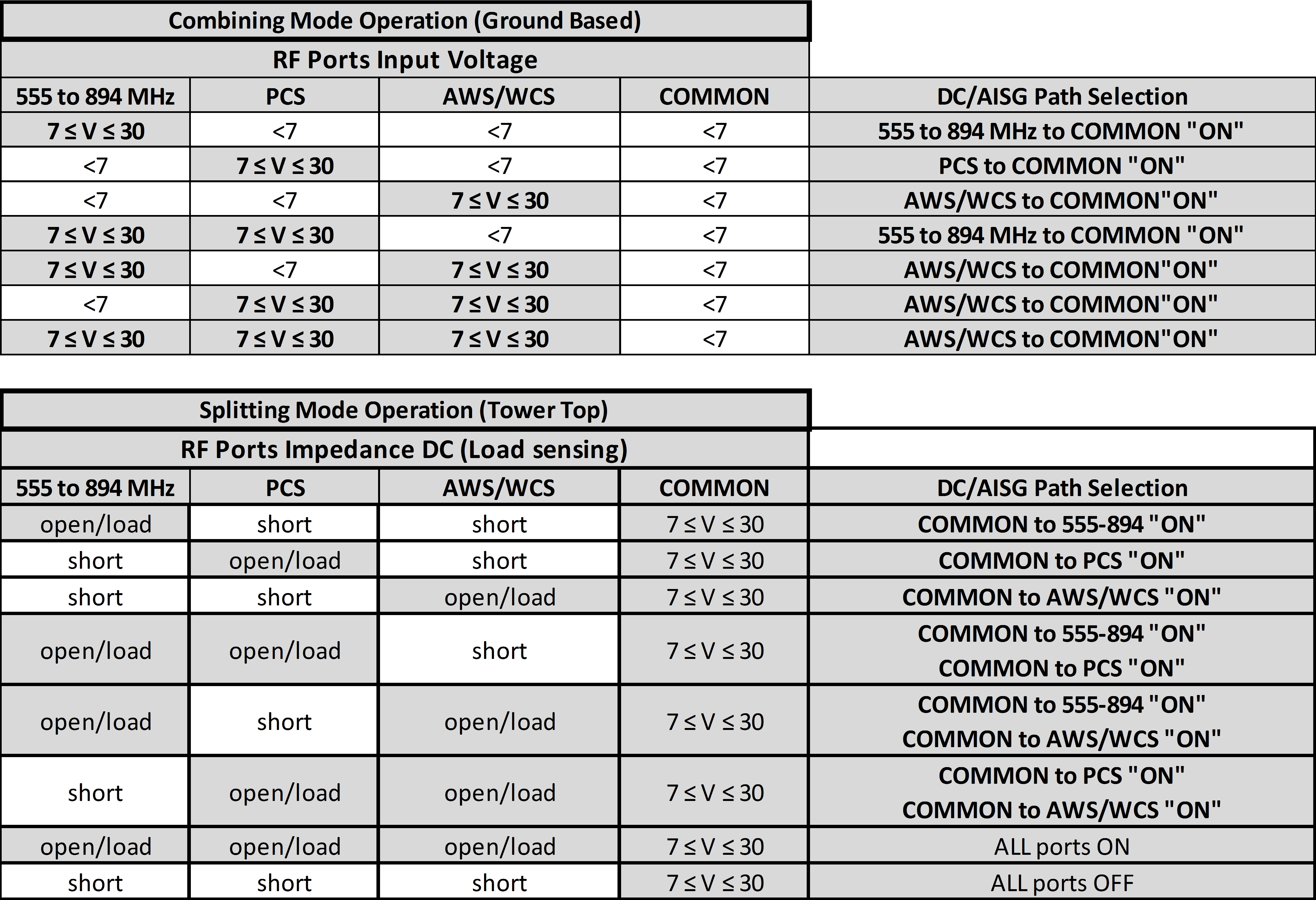 | Port Designation | 555-894MHz | PCS | AWS-WCS |