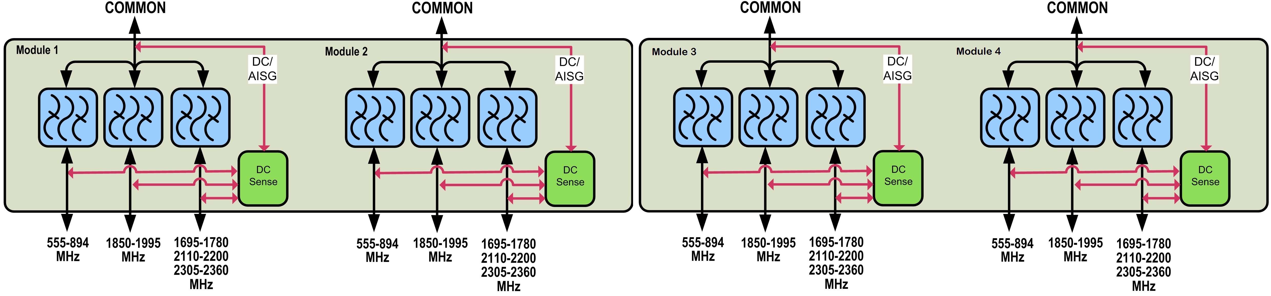 Quad Triplexer, 555-894/PCS/AWS+WCS, dc Sense,4.3-10