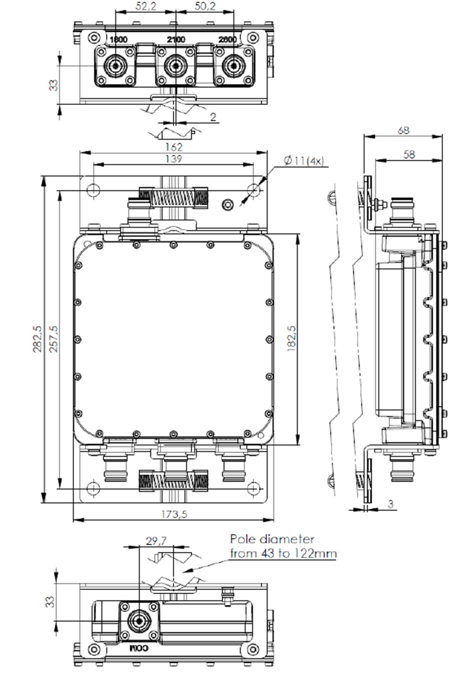 | dc/AISG Pass-through, demultiplexer | Branch 1 | Branch 2 | Branch 3 |