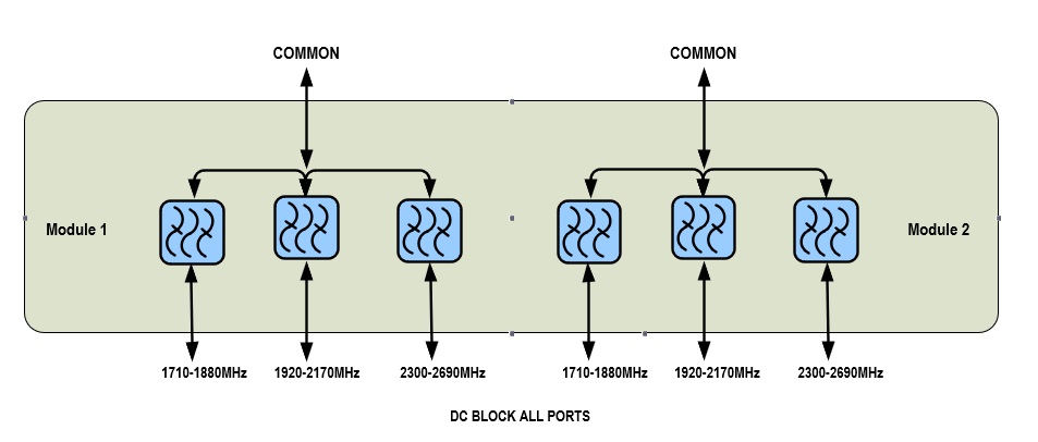 | dc/AISG Pass-through, combiner | dc/AISG blocking on all ports |